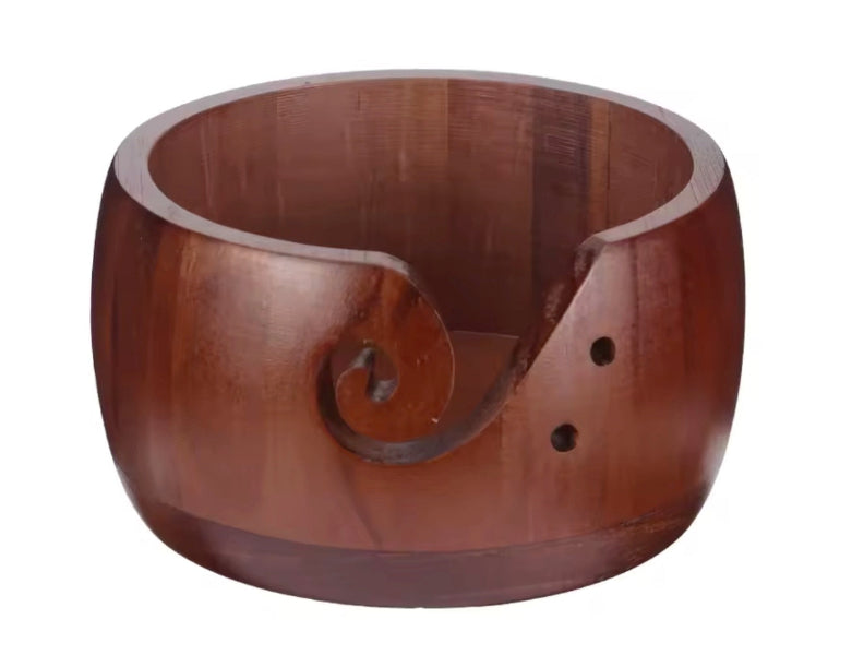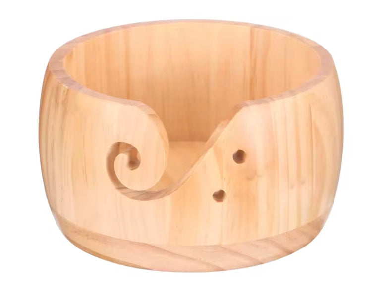 This yarn bowl is a handmade product crafted from wood. It stands at 8cm/3.14 inches tall and is 15cm/5.9 inches wide.
